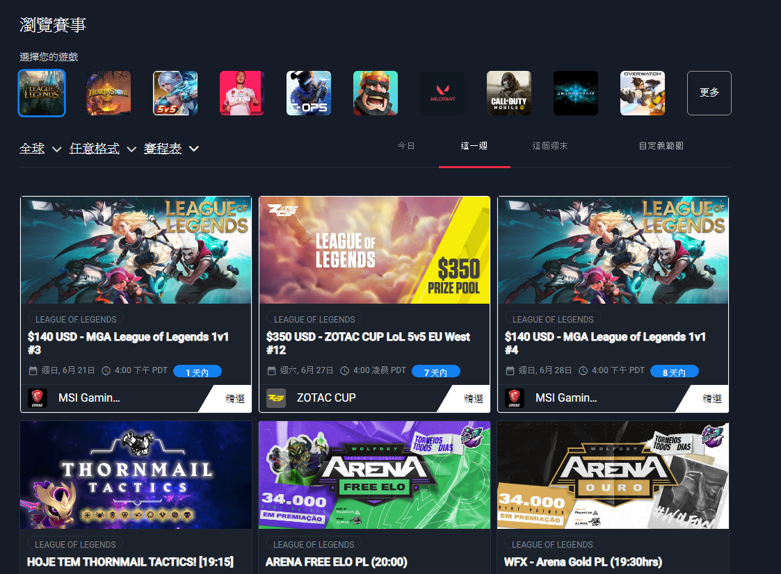 | 如果只是想參加賽事賺獎金,也可以看看目前有哪些遊戲的賽事正在舉辦 |