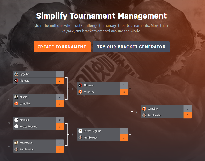 也可以透過 Battlefy 或是 Challonge 這類的網站報名與建立賽程。