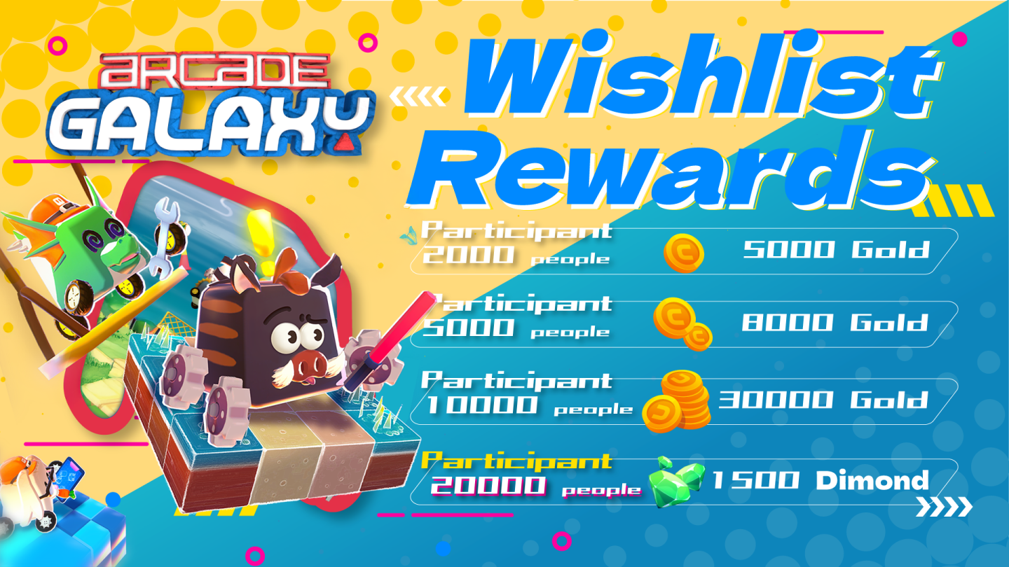 為慶祝封閉測試啟動並感謝玩家支持,第九商行特別推出「願望清單解鎖獎勵」活動。目前,《愛開蓋樂世》的 Steam 願望清單人數已突破 5,000 人,並成功解鎖 8,000 金幣獎勵。玩家可繼續加入願望清單,共同解鎖以下目標: