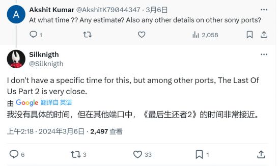 Silknigth透露,《最後生還者2》的PC版很快就要宣布了。雖然具體時間他還不確定,但他表示,《最後生還者2》是下一個移植到PC的索尼第一方遊戲中最有可能的候選。
