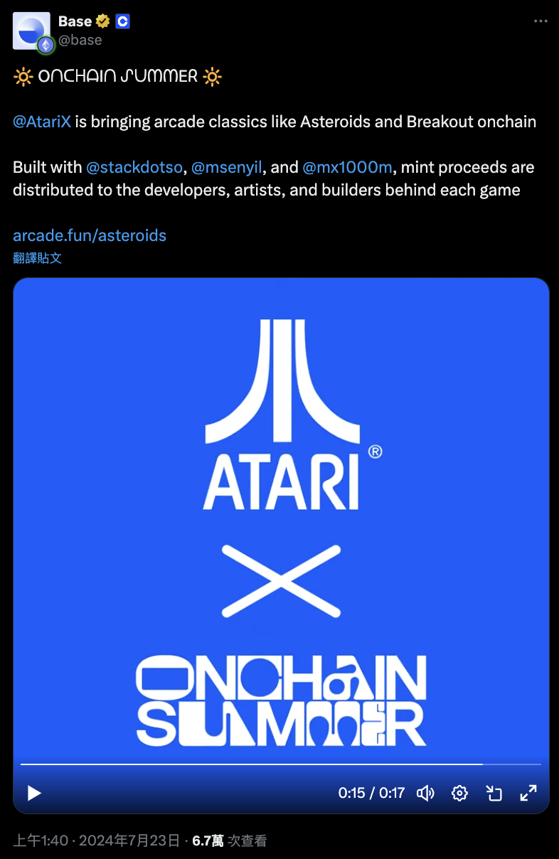 雅達利作為一家全球知名的遊戲出版商,正將其最知名的一些經典遊戲與區塊鏈技術結合,首先推出的是經典街機遊戲《Asteroids》。玩家可以在 Onchain Arcade 上面遊玩,並透過競爭全球排行榜前三名來贏取每週獎品,包括價值 1,000 美元的雅達利禮品卡。