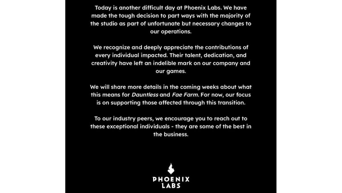 與此同時,開發工作室 Phoenix Labs 宣布將努力改善遊戲,但作為第一步,原定於 1 月 17 日開始的新賽季突然延遲,隨後工作室在 1 月 28 日進行裁員,據說這是迄今為止多次裁員中規模最大的,似乎大部分的開發人員都受到了影響,許多員工將會離開工作室,開發架構也發生了重大改變。