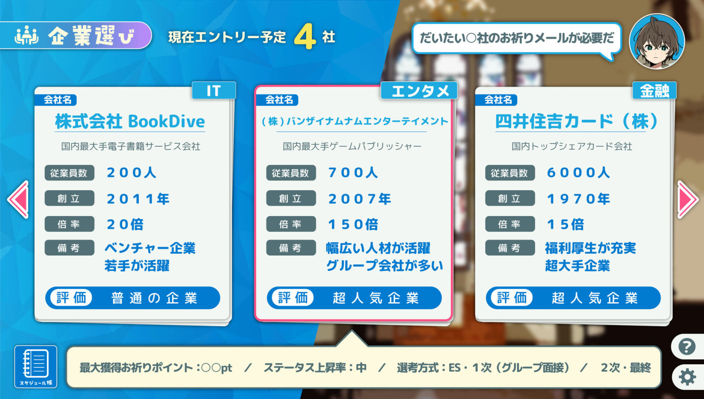 艾莉澤也會進入公司嘗試面試,公開的截圖中可以看到她在回答應徵動機時選擇答案的場景,而且似乎還在威脅一個看似面試官的人物,這都是為了能夠獲得人資更「殷切」的拒絕信件,艾莉澤要在面試過程中試圖失敗,才能收集更多信並獲得「祈禱」的力量。隨著艾莉澤的能力值和求職結果,似乎會走向多種不同的結局,感興趣的玩家們不妨加入願望清單關注喔!
