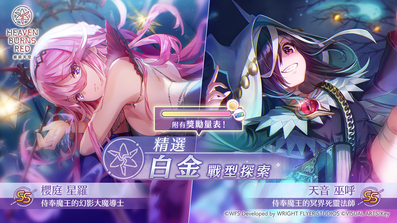 本次精選白金戰型探索將精選出 SS【侍奉魔王的冥界死靈法師】天音巫呼、SS【侍奉魔王的幻影大魔導士】櫻庭星羅,出現機率上升!