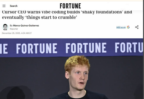 ·托埃魯於當地時間12月25日接受《Fortune》雜誌的專訪,指出現如今不少設計師已經完全閉上眼睛,對AI工具的依賴變得過於嚴重,對內容的關注卻降到了最低。他認為,這種機械式的編程方式正在累積不穩定的程式基礎,若這種不穩定的基礎進一步積累,將會在不久的將來導致嚴重崩潰。