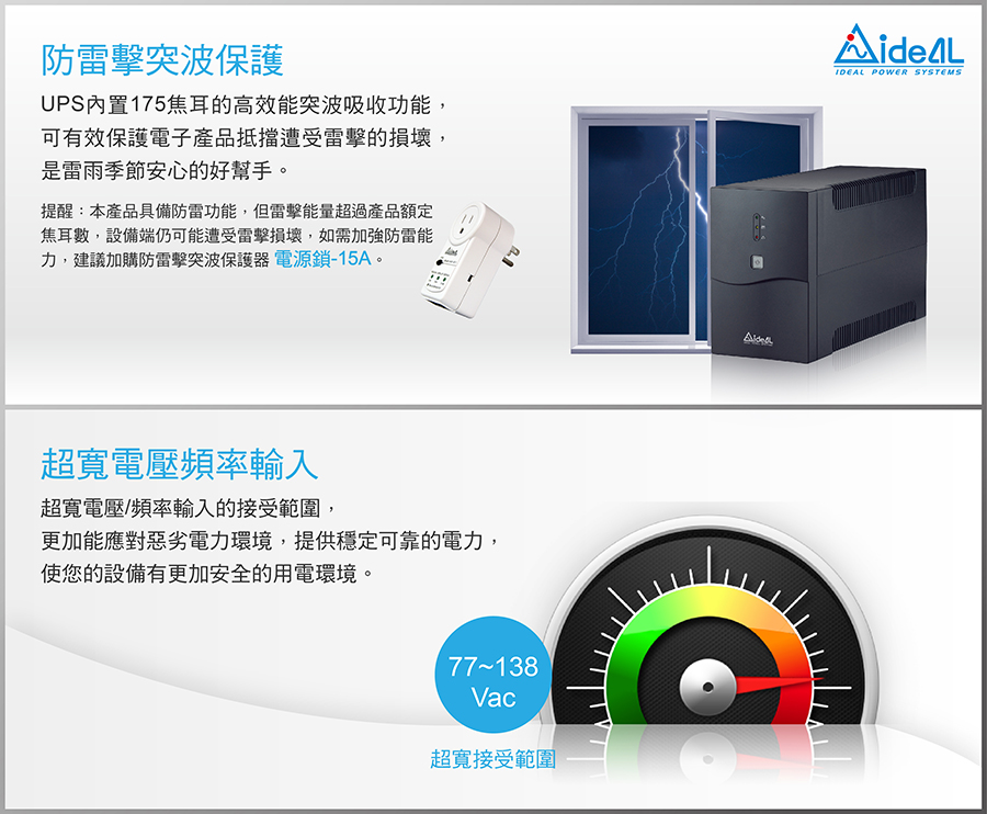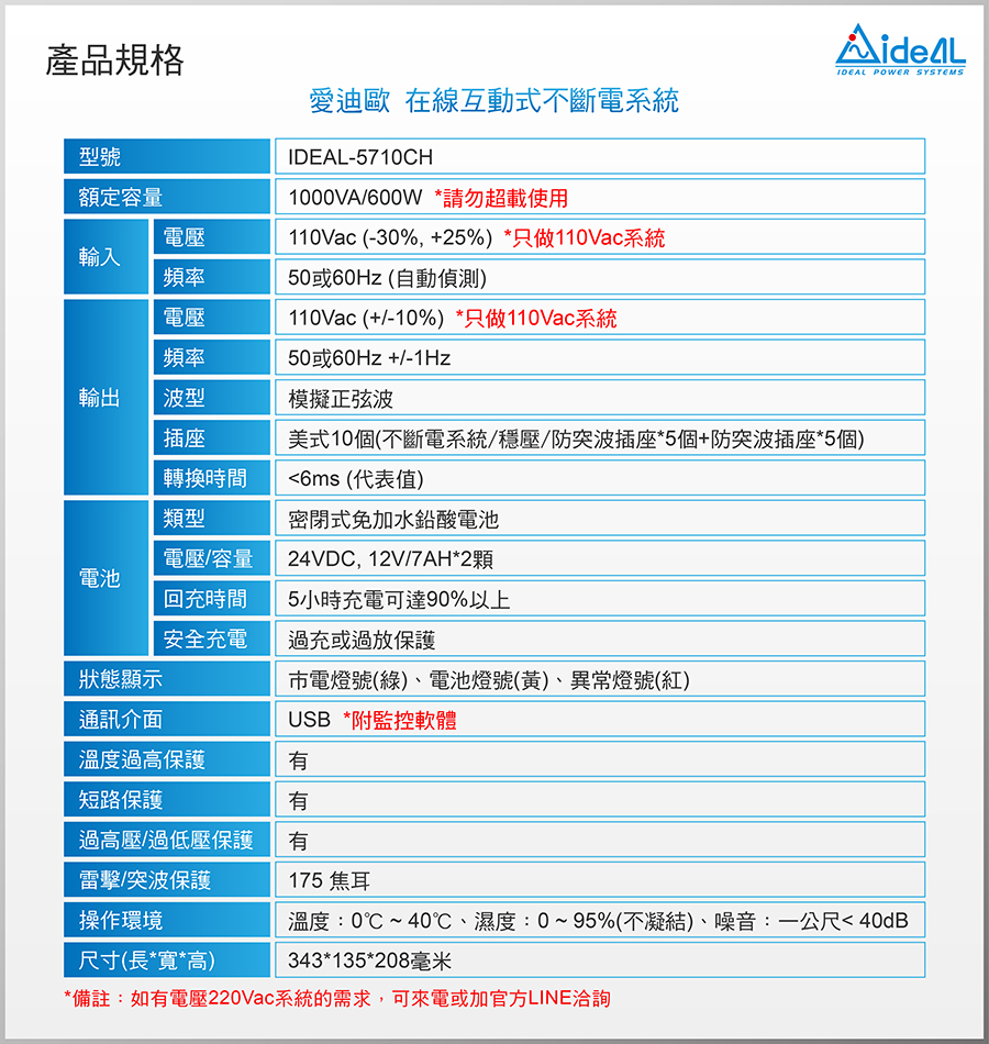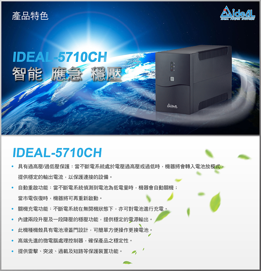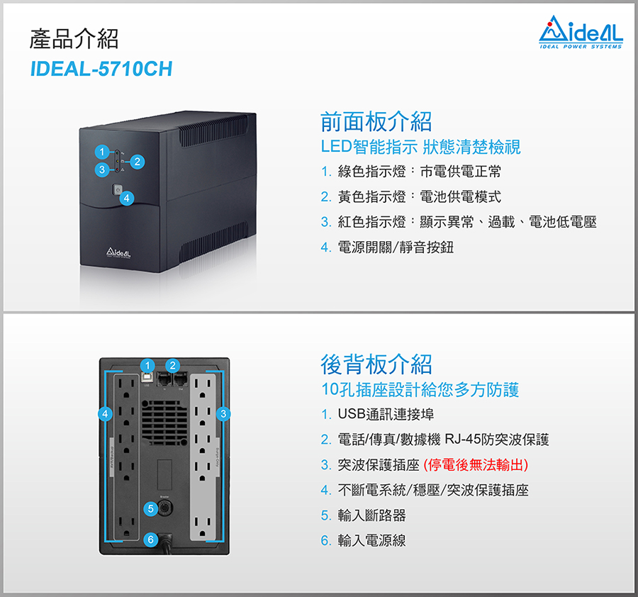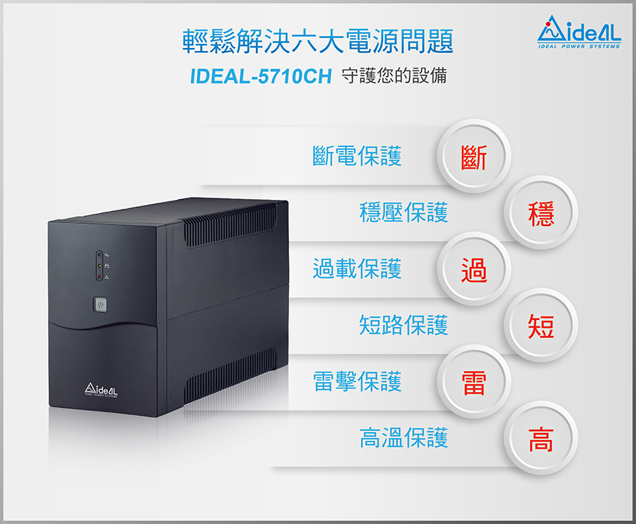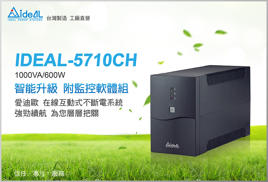 【愛迪歐IDEAL】1KVA 抽取式系列 在線互動式UPS IDEAL-5710CH-附監控軟體
