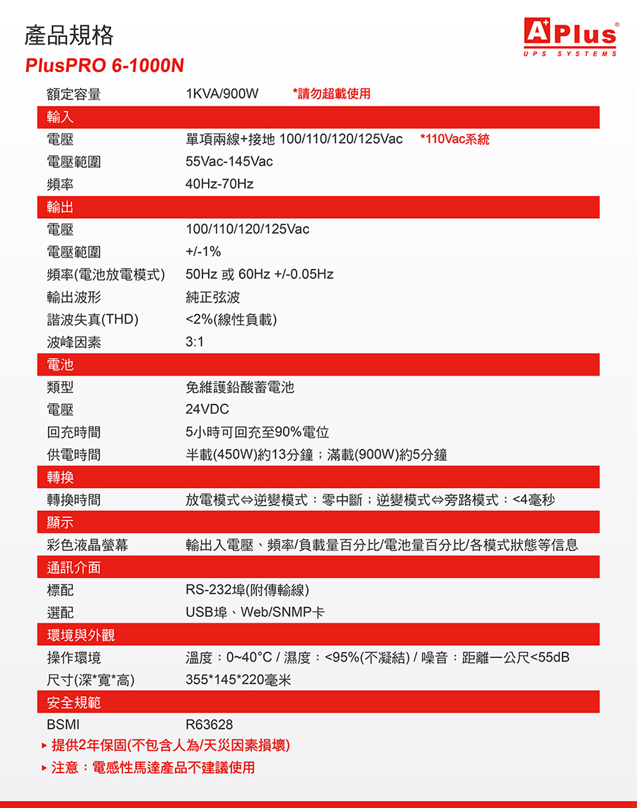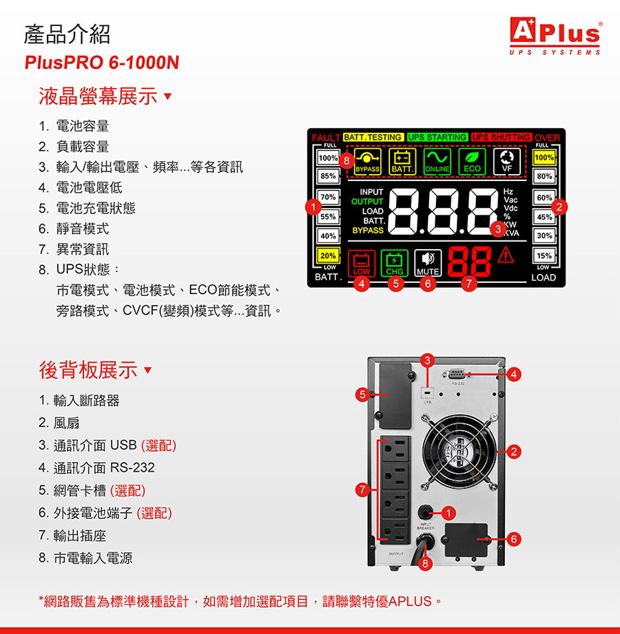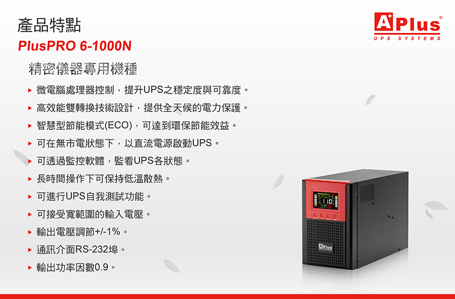 【特優Aplus】1KVA 在線式Online UPS 直立式設計 PlusPRO 6-1000N-預購品