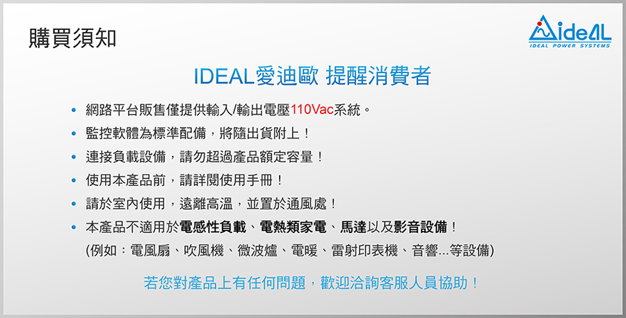 【愛迪歐IDEAL】1KVA 抽取式系列 在線互動式UPS IDEAL-7710CH-附監控軟體