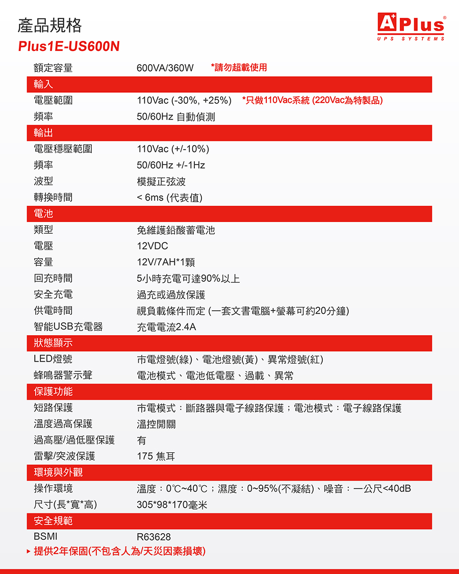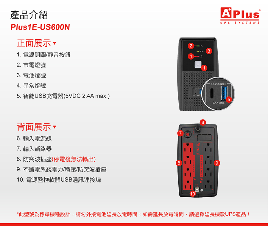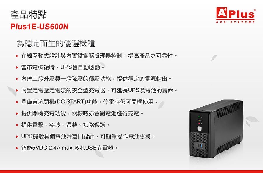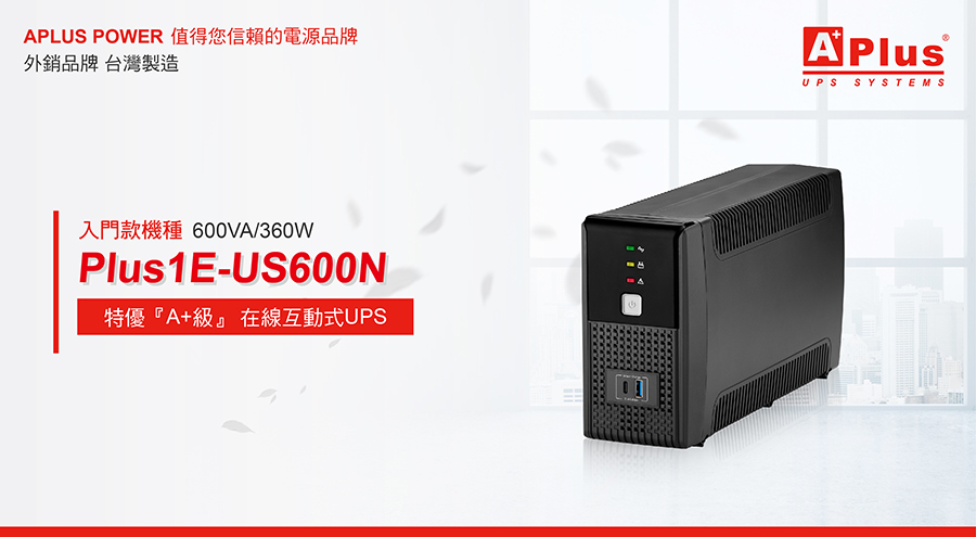 【特優Aplus】在線互動式UPS Plus1E-US600N(600VA/360W)