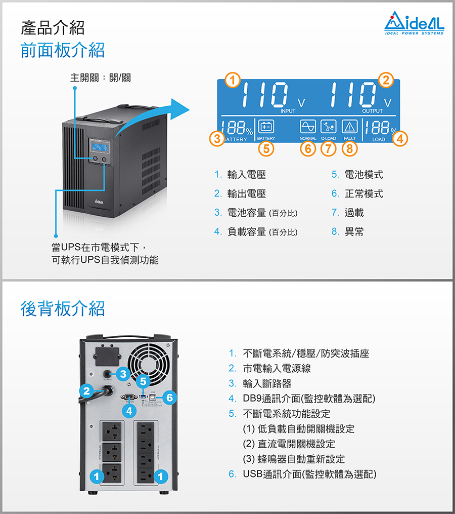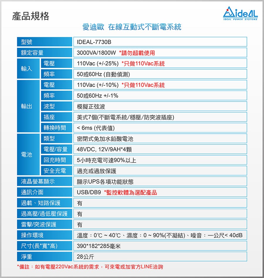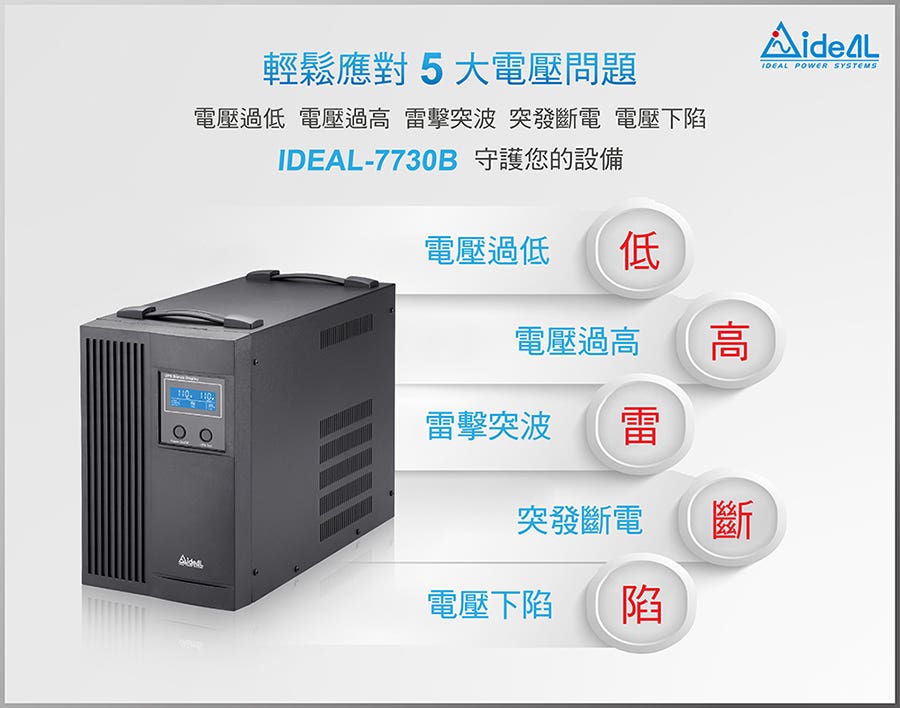 【愛迪歐IDEAL】3000VA 在線互動式不斷電系統 IDEAL-7730B(1800W)-預購品