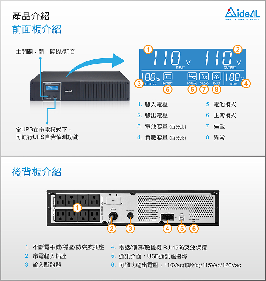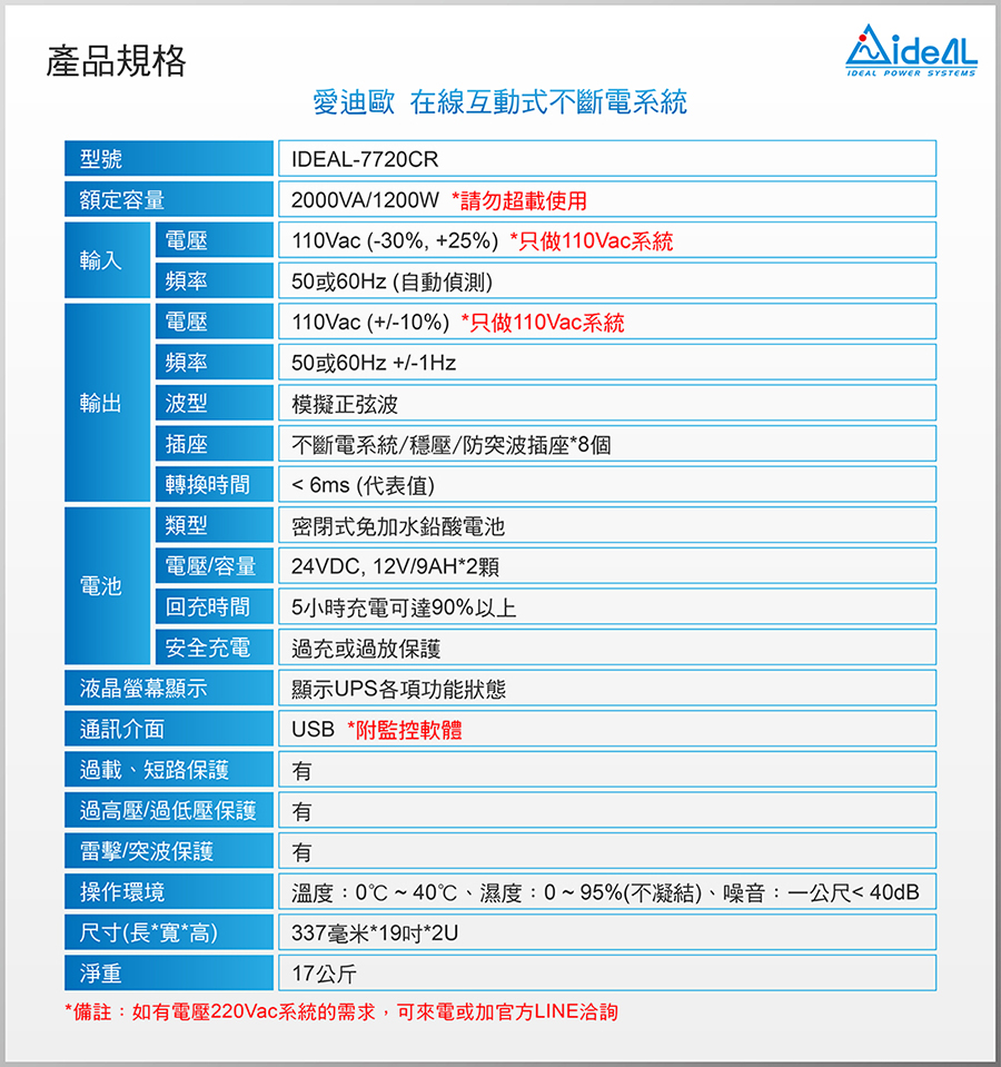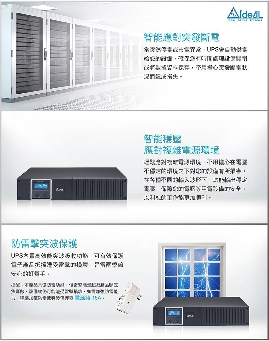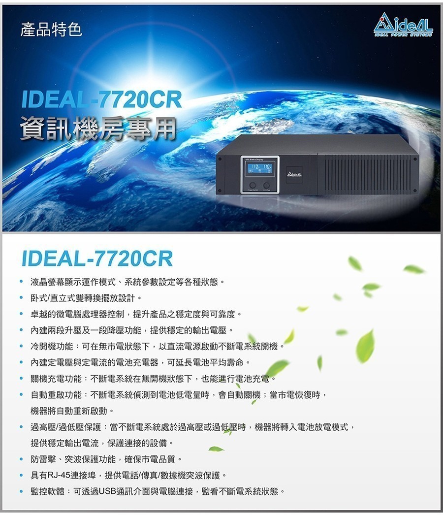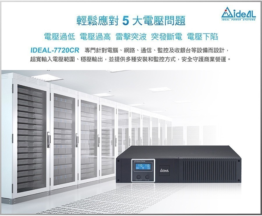 【愛迪歐IDEAL】2000VA 19吋 在線互動式不斷電系統 IDEAL-7720CR-附監控軟體-預購品